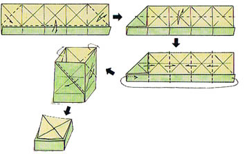 Step 2: fold up the bottom till the desire height of the box. Put the last column into the first column and make a square.