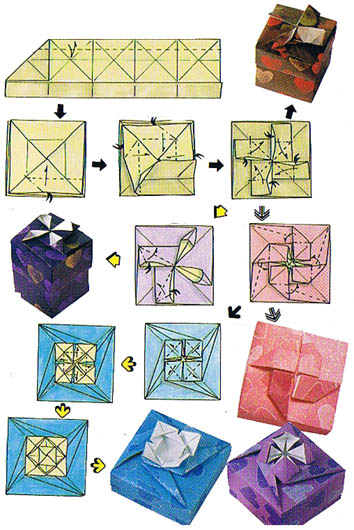 ORIGAMI: BOX Box: Base Step 1: make the base of the box: fold a long rectangular paper into 5 equal column and cut off the rest. Follow the steps in the diagram and make the marks on the paper.
